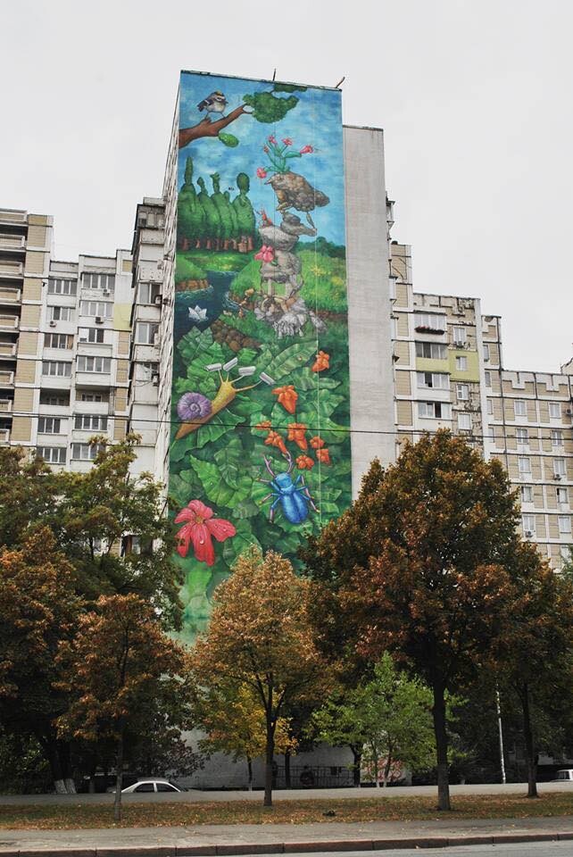 В Киеве на Харьковском массиве появился новый сюрреалистический мурал. Читайте и любуйтесь этим творением