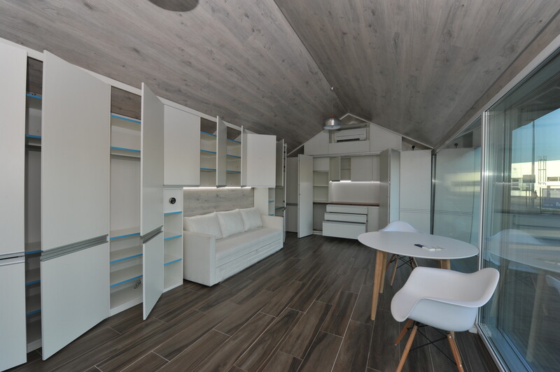 Модуль за 30 тыс. евро продается без мебели и всех инженерных систем. Предполагается, что его будут покупать в дополнение к первому для расширения площади дома. Соединяться он будет через общую герметичную дверь.