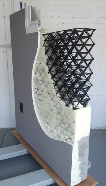 По его словам, команда решила использовать в строительстве стекловолокно, полиуретан, специальные полимеры, устойчивые к ультрафиолету. Стены дома сделаны из сложного полимера, который работает как наружные балки, благодаря чему дом легко перевезти. Балки и стены дома печатает 3D-принтер, чтобы каркас был цельным.